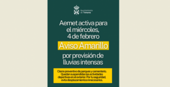 El Ayuntamiento de Tomares informa que, este miércoles, 4 de febrero, debido al Aviso Amarillo por previsión de lluvias intensas, activado por la Agencia Estatal de Meteorología (AEMET), y con el fin de preservar la seguridad de...