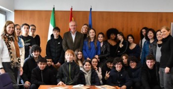 El alcalde de Tomares, José María Soriano, ha recibido en el Ayuntamiento a los estudiantes y profesorado procedentes de Francia y del IES Néstor Almendros que están realizando un intercambio de estudios dentro del Programa...