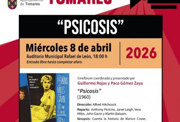 La cita preferida por los cinéfilos organizada por el Ayuntamiento de Tomares para acercar a los vecinos las mejores películas de la historia del cine, se reanuda este miércoles, 8 de abril, con el famoso thriller psicológico del...