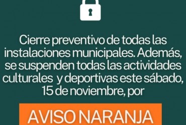 SÁBADO, 15 DE NOVIEMBRE: CIERRE PREVENTIVO DE TODAS LAS INSTALACIONES...