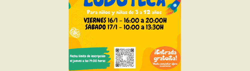 DEL LUNES 12 AL JUEVES 15 DE ENERO (A LAS 14:00 H): INSCRIPCIÓN EN LUDOTECA GRATUITA DEL VIERNES 16 Y SÁBADO 17 DE ENERO 2026