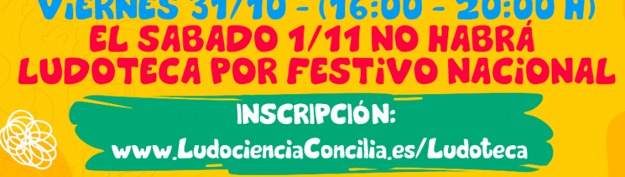HASTA ESTE JUEVES, 30 DE OCTUBRE: ABIERTA INSCRIPCIÓN EN LUDOTECA GRATUITA (SOLO EL VIERNES, 31 DE OCTUBRE)