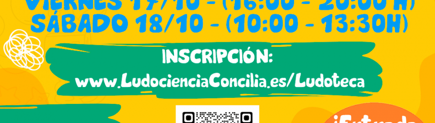 HASTA EL JUEVES, 16 DE OCTUBRE (A LAS 14:00 H): INSCRIPCIÓN EN LA LUDOTECA GRATUITA (VIERNES 17 Y SÁBADO 18 OCTUBRE)