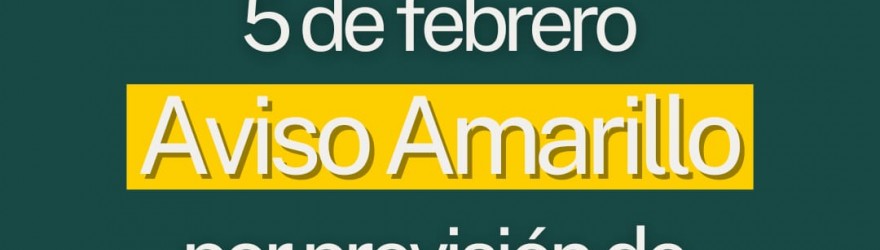 MIÉRCOLES, 4 DE FEBRERO: AEMET ACTIVA "AVISO AMARILLO": SUSPENSIÓN DE CLASES EN LOS CENTROS EDUCATIVOS Y ACTIVIDADES DEPORTIVAS EN EL EXTERIOR. CIERRE PREVENTIVO DE PARQUES Y CEMENTERIO