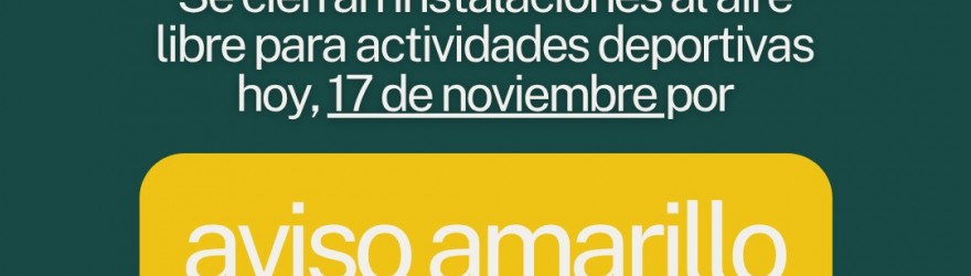 LUNES, 17 DE NOVIEMBRE: AVISO AMARILLO POR LLUVIAS: CIERRE PREVENTIVO DE INSTALACIONES AL AIRE LIBRE PARA ACTIVIDADES DEPORTIVAS