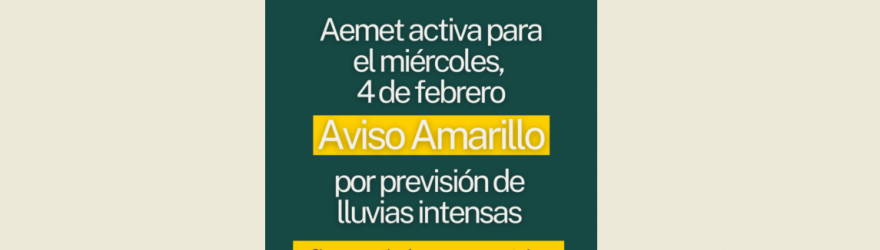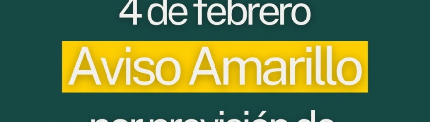 MIÉRCOLES, 4 DE FEBRERO: AEMET ACTIVA "AVISO AMARILLO": SUSPENSIÓN DE CLASES EN LOS CENTROS EDUCATIVOS Y ACTIVIDADES DEPORTIVAS EN EL EXTERIOR. CIERRE PREVENTIVO DE PARQUES Y CEMENTERIO
