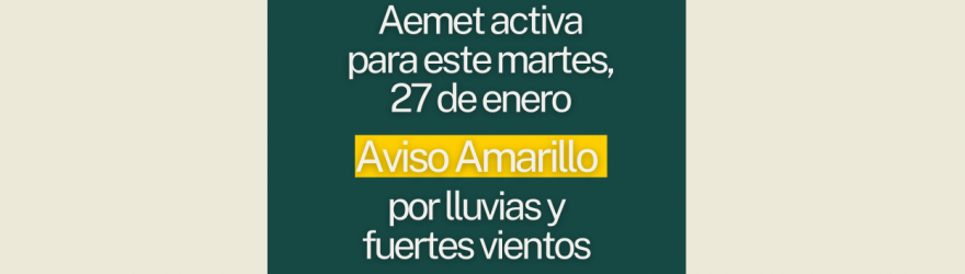 AEMET ACTIVA “AVISO AMARILLO” POR LLUVIAS Y FUERTES VIENTOS ESTE MARTES, 27 DE ENERO: CIERRE PREVENTIVO HASTA LAS 17:00 HORAS DE PARQUES, CEMENTERIO E INSTALACIONES DEPORTIVAS AL AIRE LIBRE