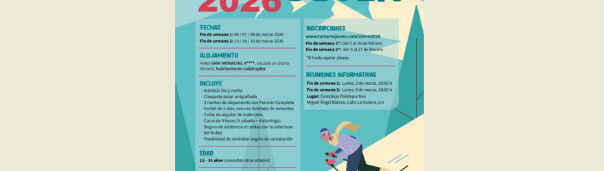 EL AYUNTAMIENTO DE TOMARES ABRE ESTE MARTES, 3 DE FEBRERO, A LAS 9.00 HORAS, EL PLAZO PARA APUNTARSE A “NIEVE JOVEN 2026”, UN FIN DE SEMANA ESQUIANDO EN SIERRA NEVADA