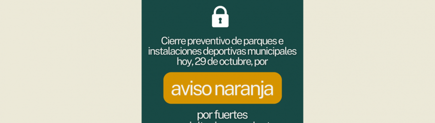 CIERRE PREVENTIVO DE PARQUES, INSTALACIONES DEPORTIVAS MUNICIPALES Y LA BIBLIOTECA, ESTE MIÉRCOLES, 29 DE OCTUBRE, POR AVISO NARANJA POR FUERTES LLUVIAS Y VIENTO
