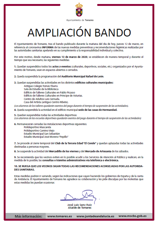 AMPLIACIÓN DEL BANDO MUNICIPAL SOBRE EL CORONAVIRUS