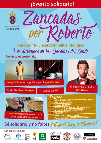 Vive Tomares/Agenda/DOMINGO, 1 DE DICIEMBRE: GRAN FIESTA SOLIDARIA "ZANCADAS POR ROBERTO"EN LOS JARDINES DELCONDE, CON HUGO SALAZAR, DJ, EL MAGO JAVI NEMO Y UNA GRAN PAELLA PARA 600 PERSONAS