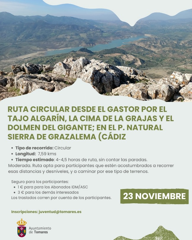 Vive Tomares/Agenda/DOMINGO, 23 DE NOVIEMBRE: RUTA DE SENDERISMO POR EL PARQUE NATURAL "SIERRA DE GRAZALEMA" (ABIERTO PLAZO DE INSCRIPCIÓN) ¡PLAZAS LIMITADAS!