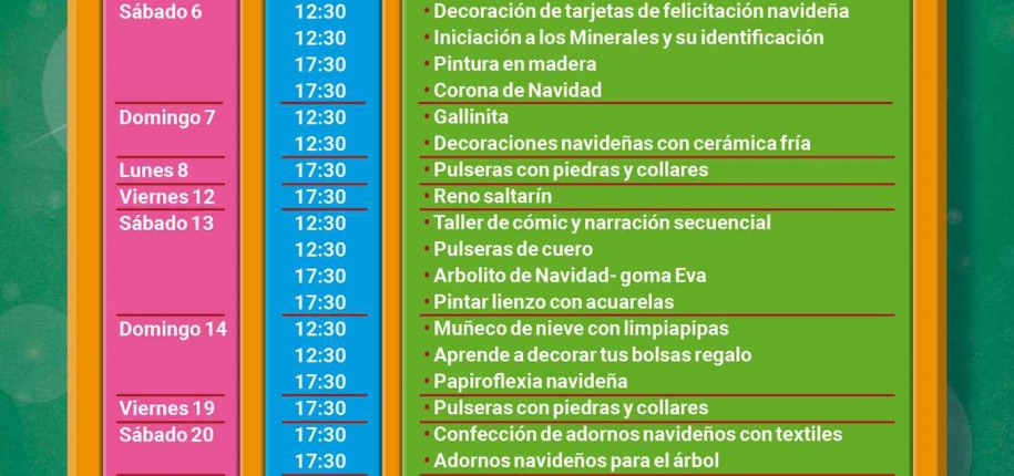 HASTA EL DOMINGO, 4 DE ENERO: TALLERES EN EL MERCADO DE ARTESANÍA DE NAVIDAD, EN LA PLAZA DEL AYUNTAMIENTO