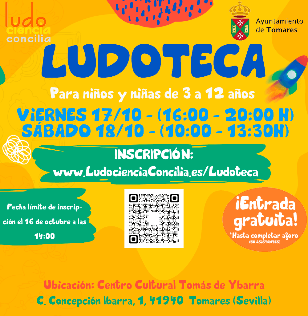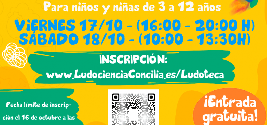HASTA EL JUEVES, 16 DE OCTUBRE (A LAS 14:00 H): INSCRIPCIÓN EN LA LUDOTECA GRATUITA (VIERNES 17 Y SÁBADO 18 OCTUBRE)