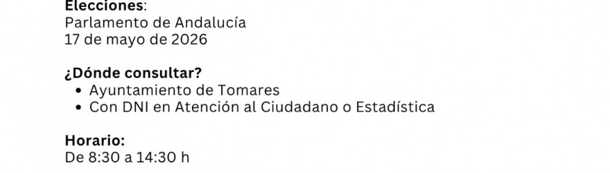 DEL 30 DE MARZO AL 6 DE ABRIL: EXPOSICIÓN PÚBLICA DEL CENSO ELECTORAL PARA LAS PRÓXIMAS ELECCIONES AL PARLAMENTO DE ANDALUCÍA DEL 17 DE MAYO DE 2026