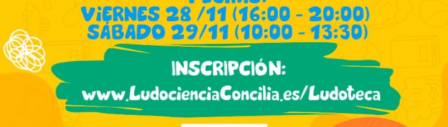 HASTA ESTE JUEVES, 27 DE NOVIEMBRE (A LAS 14 H): INSCRIPCIÓN EN LA LUDOTECA GRATUITA DEL VIERNES, 28 Y SÁBADO 29 DE NOVIEMBRE