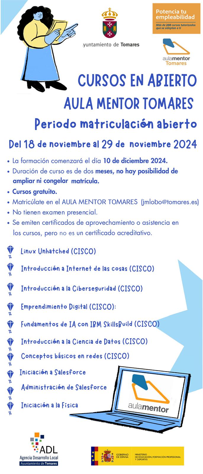 HASTA EL VIERNES, 29 DE NOVIEMBRE: ABIERTO PLAZO CURSOS DEL AULA MENTOR DE TOMARES