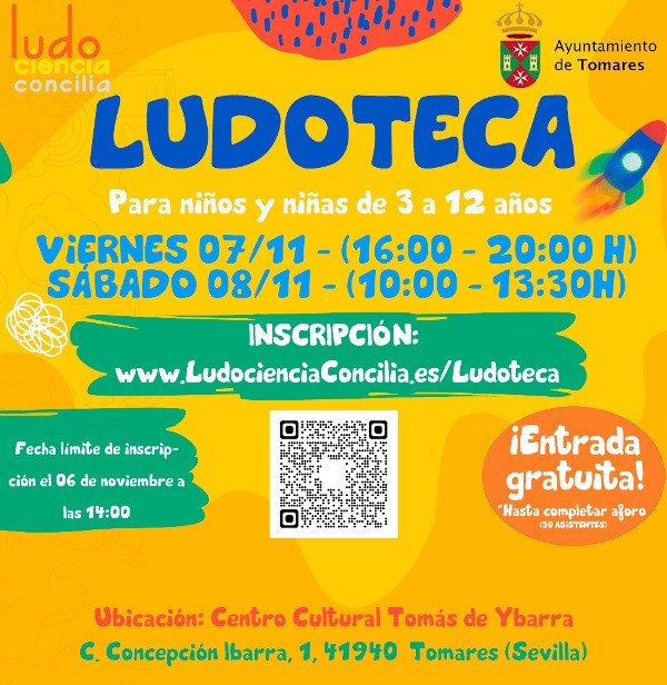 HASTA ESTE JUEVES, 6 DE NOVIEMBRE ( HASTA LAS 14:00 H): INSCRIPCIÓN EN LA LUDOTECA GRATUITA DEL VIERNES 7 Y SÁBADO 8 DE NOVIEMBRE