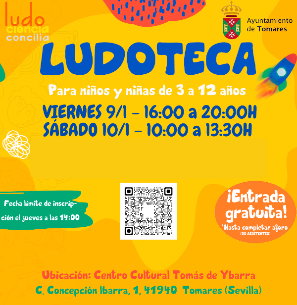 Vive Tomares / Agenda / HASTA ESTE JUEVES, 8 DE ENERO (A LAS 14 H): PLAZO DE INSCRIPCIÓN EN LUDOTECA GRATUITA DEL VIERNES 9 Y SÁBADOS 10 DE ENERO