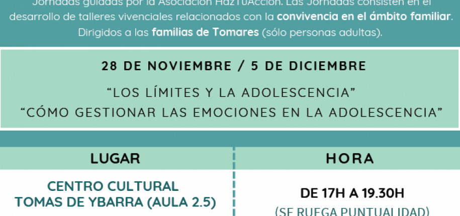 JUEVES, 5 DE DICIEMBRE: "JORNADAS DE FAMILIAS": "CÓMO GESTIONAR LAS EMOCIONES EN LA ADOLESCENCIA"