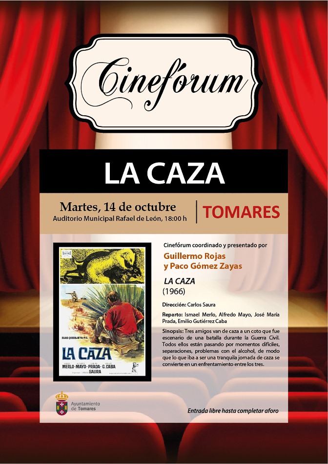 MARTES, 14 DE OCTUBRE: "CINEFÓRUM DE TOMARES": PELÍCULA "LA CAZA", DIRIGIDA POR CARLOS SAURA