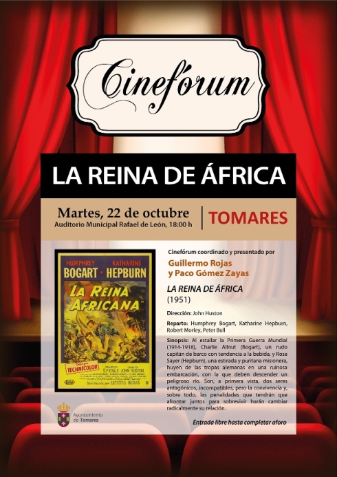 MARTES, 22 DE OCTUBRE: CINEFÓRUM DE CINE CLÁSICO: "LA REINA DE ÁFRICA" (1951) DIRIGIDA POR JOHN HUSTON