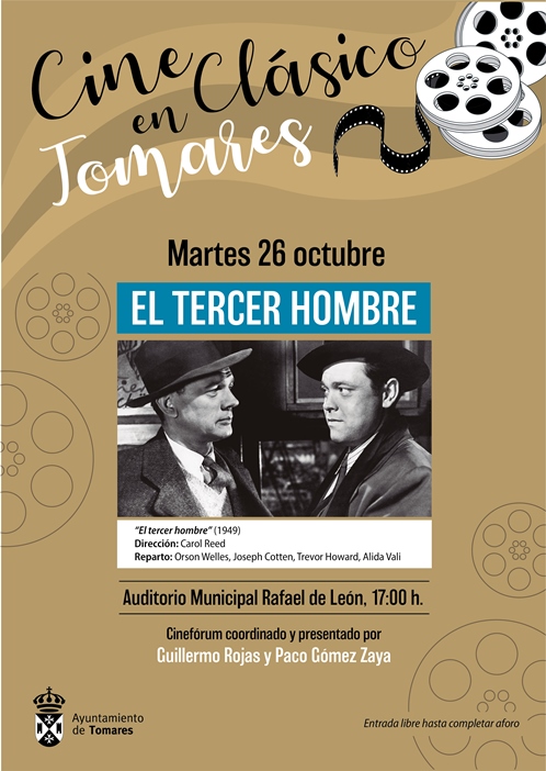 MARTES, 26 DE OCTUBRE: CINE FORUM DE TOMARES DE CINE CLÁSICO: "EL TERCER HOMBRE", DIRIGIDO POR CAROL REED