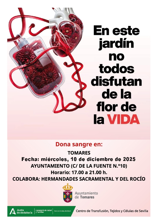 MIÉRCOLES, 10 DE DICIEMBRE: UNIDAD MÓVIL PARA DONAR SANGRE, EN EL AYUNTAMIENTO DE TOMARES