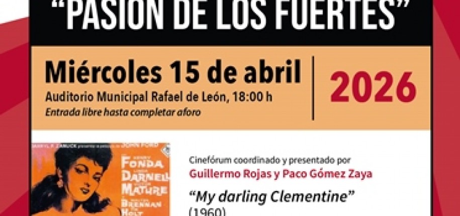 MIÉRCOLES, 15 DE ABRIL: CINEFÓRUM: FILM "LA PASIÓN DE LOS FUERTES" (1960) DIRIGIDA POR JOHN FORD