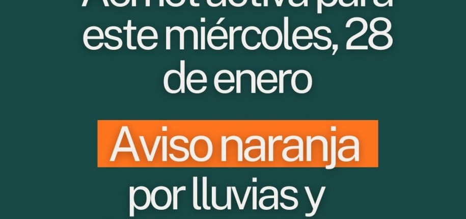 Vive Tomares/Agenda/MIÉRCOLES, 28 DE ENERO: "AVISO NARANJA": CIERRE PREVENTIVO HASTA LAS 15:00 HORAS DE PARQUES, CEMENTERIO E INSTALACIONES DEPORTIVAS EXTERIORES Y CUBIERTAS