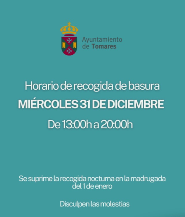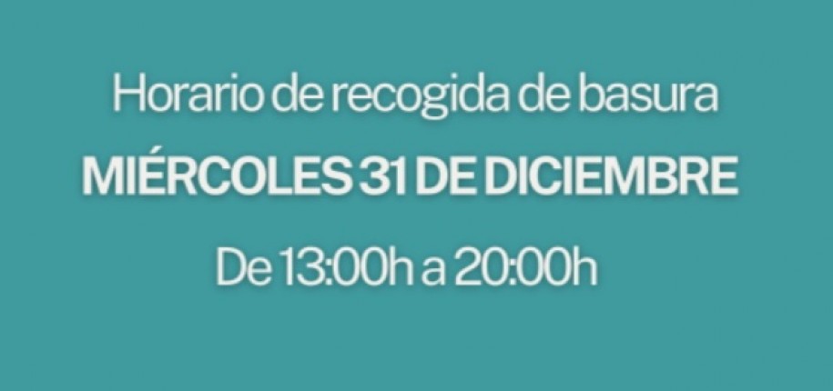 MIÉRCOLES, 31 DICIEMBRE (DE 13 A 20 H): HORARIO RECOGIDA DE BASURA
