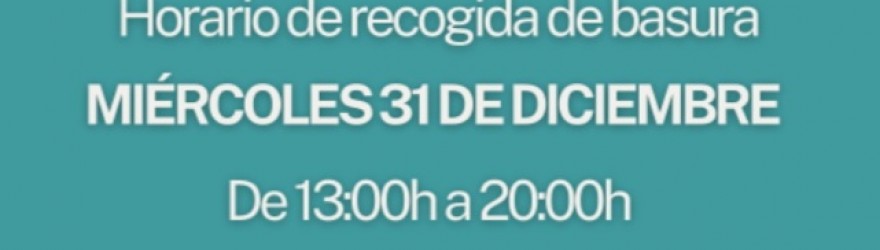MIÉRCOLES, 31 DICIEMBRE (DE 13 A 20 H): HORARIO RECOGIDA DE BASURA