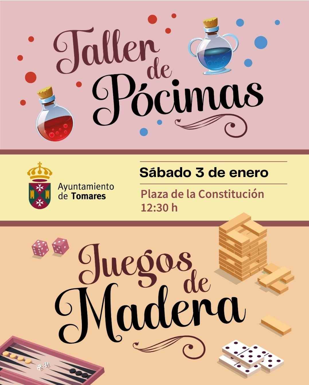 SÁBADO, 3 DE ENERO: TALLER DE PÓCIMAS Y JUEGOS DE MADERA, 12:30 H, EN LA PLAZA DE LA CONSTITUCIÓN