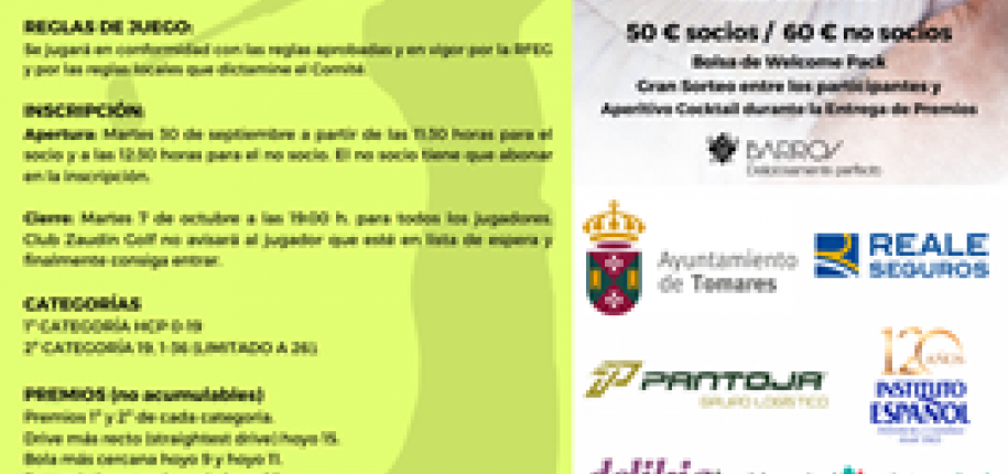 Vive Tomares/Agenda/VIERNES 10 Y SÁBADO 11 DE OCTUBRE: XII TORNEO BENÉFICO “TIERRA DE HOMBRES” A FAVOR DE LA INFANCIA MÁS VULNERABLE, EN EL CLUB ZAUDÍN GOLF DE TOMARES