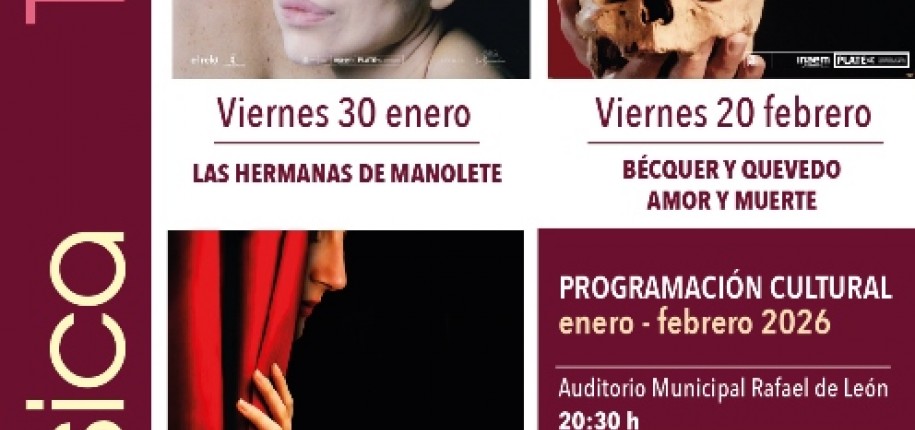 Vive Tomares/Agenda/VIERNES 30 DE ENERO, 6 Y 20 DE FEBRERO: CICLO DE TEATRO “LAS HERMANAS DE MANOLETE”, “LA TRAVIATTA” Y “BÉCQUER Y QUEVEDO. AMOR Y MUERTE”, CON PEDRO CASABLANC