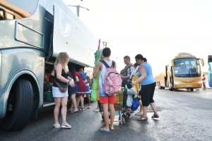 Hoy jueves, 22 de agosto, penúltimo día de esta iniciativa, cuatro autobuses han salido desde la tomareña calle de Camarón de la Isla a las nueve en punto de la mañana con destino a Punta Umbría A bordo, unos 200 vecinos de la localidad, la mayoría jóvenes, que pasarán una divertida jornada playera, y regresarán a casa de forma cómoda y segura.