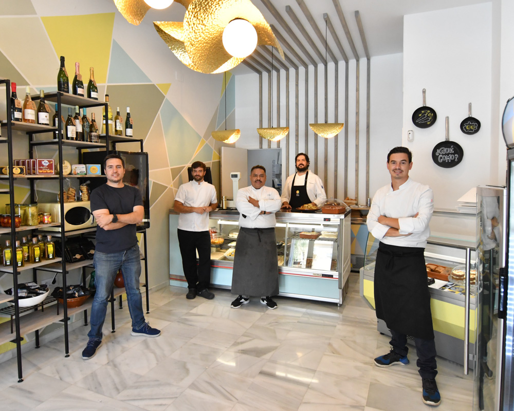 Cinco hosteleros formados en la Escuela de Hostelería de la Taberna del Alabardero de Sevilla han abierto el pasado, 21 de mayo, un negocio de comida para llevar cien por cien casera. Jesús Plata, Juan Leopoldo Núñez, Antonio Álvarez, Fernando Santana y Manuel Sánchez son cinco profesionales que se han formado en la alta cocina de restaurantes del centro de Sevilla y que, empujados por la falta de turistas a raíz de la pandemia, han querido traer sus ideas a Tomares con un doble negocio de restauración en Ciudad Parque.