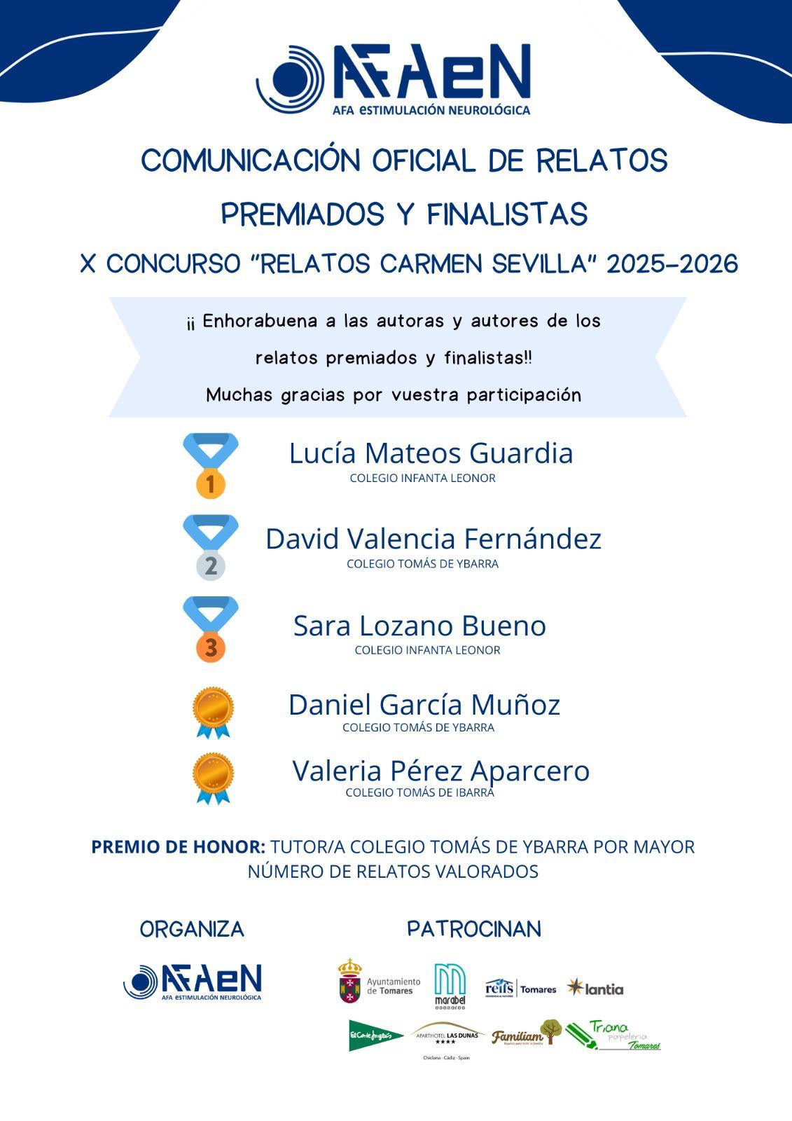 PREMIADOS Y FINALISTAS DEL X CONCURSO DE RELATOS “CARMEN SEVILLA” 2025-26 DE AFAeN: