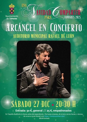 Entradas: 25 euros empadronados; y 30 euros, el resto, aquí: https://tomaresticket.com/arcangel-en-concierto/ y https://www.giglon.com/web/guest/todos?idEvent=arcangel-en-concierto---auditorio-municipal