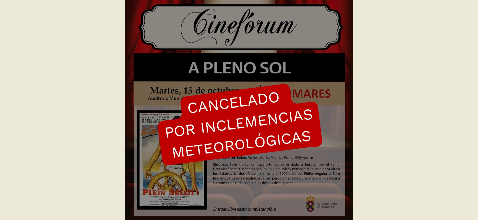 CANCELADO POR EL TEMPORAL HOY MARTES, 15 DE OCTUBRE, EL “CINEFÓRUM DE CINE CLÁSICO” DE TOMARES PREVISTO PARA ESTA TARDE