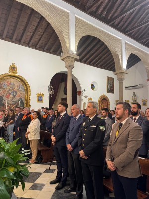 Triduo Extraordinario que se celebró con una misa especial este domingo, 26 de octubre, dedicada a quienes velan por la seguridad en el municipio: Policía Local y Protección Civil, por su compromiso diario y acompañar al pueblo de Tomares en todos los días importantes del año. Misa que fue oficiada por Leonardo Sánchez Acebedo, concelebrada por el párroco, Fernando Emilio Borrego Ojeda, y presidida por el alcalde de Tomares, José María Soriano, el Hermano Mayor de la Hdad. Sacramental, Joaquín Manzano, y la presencia de concejales, el Inspector Jefe de la Policía Local de Tomares, Emilio Borrego, y el Jefe de Protección Civil de Tomares, Jaime Fernández.