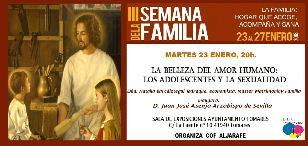 El Arzobispo de Sevilla, monseñor Juan José Asenjo, inaugura esta tarde en Tomares la III Semana de la Familia: ‘La Familia: Hogar que acoge, acompaña y sana”, que se celebrará del 23 al 27 de enero, en diversas Parroquias de Sevilla y municipios de la provincia como Tomares, Dos Hermanas, Osuna y Mairena. Será a las 20:00 horas, en el Salón de Plenos del Ayuntamiento de Tomares (C/ de la Fuente, 10).