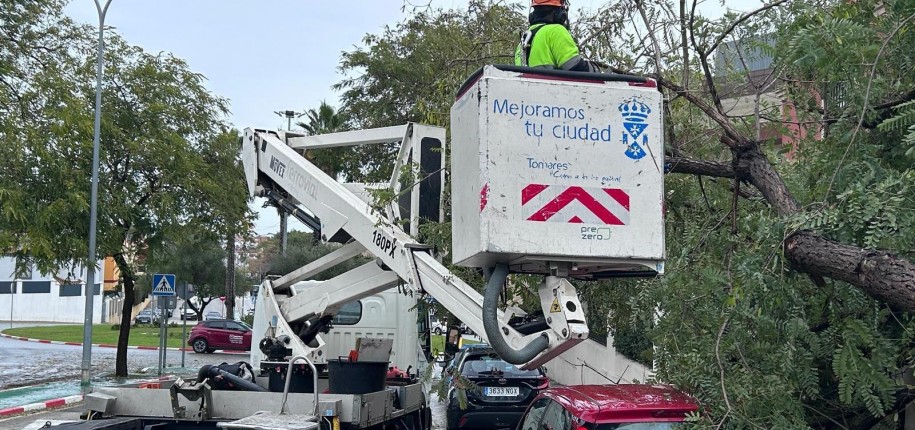 Por este motivo, el alcalde de Tomares, José María Soriano, ha querido agradecer a todos su trabajo e implicación: “Gracias a todos los trabajadores municipales de Medioambiente, Limpieza, PreZero, y Vías y Obras, así como a Bomberos, Policía Local y Protección Civil por el esfuerzo que han realizado durante todo este día para atender las incidencias provocadas por el fuerte viento e intensas lluvias en Tomares”.