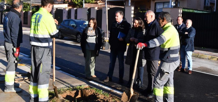 El alcalde de Tomares, José María Soriano, ha supervisado este miércoles, 3 de diciembre, la plantación un centenar de árboles que el Ayuntamiento está sembrando en las calles Violeta Parra, Victoria de los Ángeles, Dulce Chacón y Carmen de Burgos, situadas en las proximidades de Aljamar y Hacienda La Cartuja. La actuación forma parte de la última fase del Proyecto de Repavimentación y Mejora de las Bandas de Aparcamiento que el Ayuntamiento está ejecutando, con el objetivo de seguir mejorando los espacios urbanos y el medioambiente
