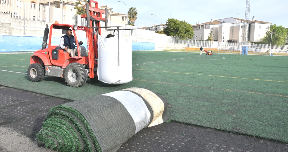 El Ayuntamiento de Tomares está cambiado el viejo césped del Estadio Municipal José Moreno “Pepillo”, donde juegan y entrenan los jugadores de la Escuela y de los equipos del Camino Viejo CF por uno nuevo del última generación homologado por la FIFA que permita a los usuarios jugar al fútbol en las mejores condiciones posibles.