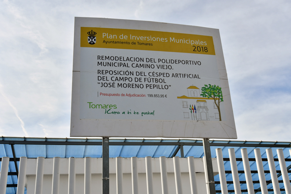 El Ayuntamiento de Tomares está cambiado el viejo césped del Estadio Municipal José Moreno “Pepillo”, donde juegan y entrenan los jugadores de la Escuela y de los equipos del Camino Viejo CF por uno nuevo del última generación que permita a los usuarios jugar al fútbol en las mejores condiciones posibles.