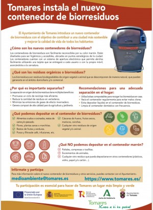 El Ayuntamiento de Tomares, en su apuesta por el medio ambiente y la sostenibilidad, ha puesto en funcionamiento desde el 8 de enero, los nuevos contenedores de Biorresiduos, de color marrón. Se trata del quinto contenedor, que mejorará la gestión de los residuos orgánicos para su posterior aprovechamiento y transformación en compost o energía.