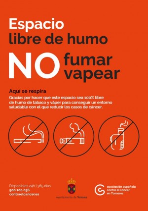 Con este convenio, el Ayuntamiento de Tomares se adhiere a la red de “Espacios sin humo” de la Asociación Española Contra el Cáncer (AECC), sumándose así a la iniciativa “Espacios sin Humo” para proteger la salud de los fumadores y no fumadores, especialmente de los niños, y promover entornos libres de tabaco y vapeo en espacios públicos y colectivos. La campaña también contempla señalización de las zonas libres de humo, la aprobación de una ordenanza, concienciación ciudadana y programas de ayuda para dejar de fumar o vapear.