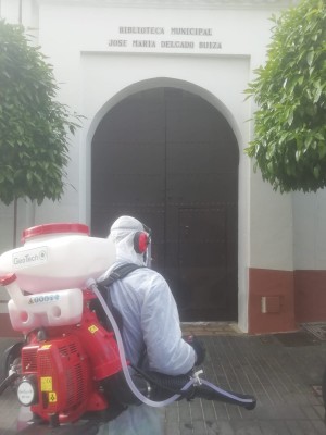 El Ayuntamiento de Tomares está limpiando y desinfectando, además de las calles y espacios públicos, todas las instalaciones culturales del municipio.