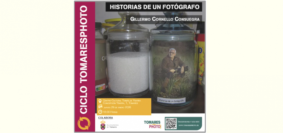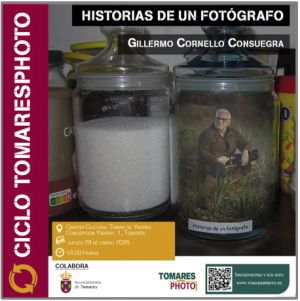 Tomares ofrecerá este jueves 29 de enero, una interesante Conferencia “Historias de un fotógrafo” a cargo del reconocido fotógrafo Guillermo Cornello Consuegra. Será a las 18:00 horas en el Centro Cultural Tomás de Ybarra (C/ Concepción Ibarra, 1) Aula 2.1. Entrada libre.